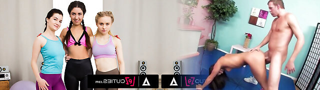 角质legging穿着老师得到了她的胸部按摩她的邻居