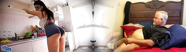 沉重的拉丁巴西Cameltoe婊子蹂躏她的表弟时,她的配偶离开工作