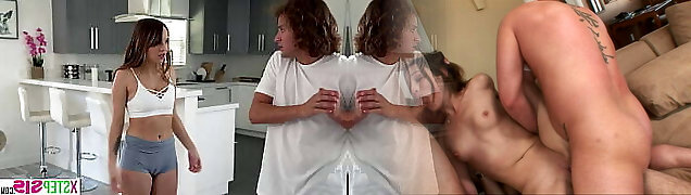 灵活的青少年继妹蜂蜜海斯需要她的cameltoe问题