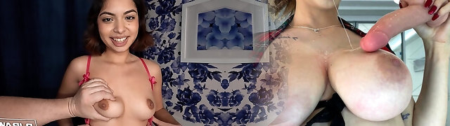 深色头发的丰满若虫拉出她拥有的最大的假阳具,骑着他,直到她拍摄一个负载