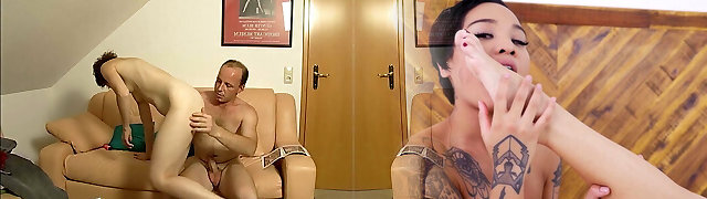 我用牛奶填充我的继母一个很好的按摩后,而爸爸做饭