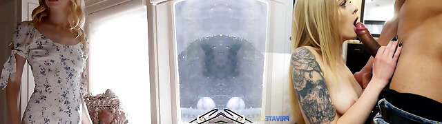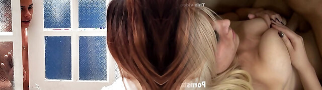 巨大的boobed,金发女郎用辫子撕毁dame,Amber Alena在生活公寓里进行了严厉的性交