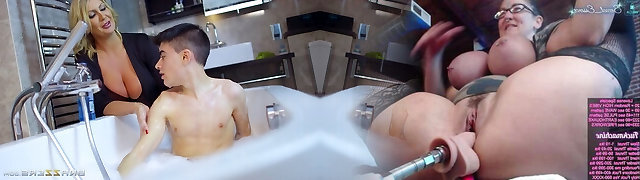 巨大的胸青少年的金发碧眼的口交、肛门的妈妈cum