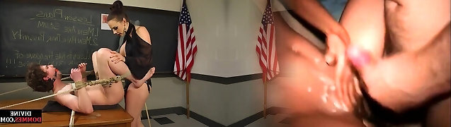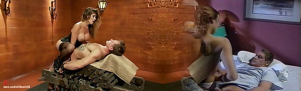 多米娜和女主人让奴隶他妈的在女性主导乳胶实况调查团