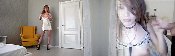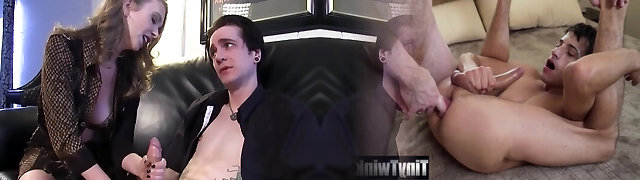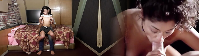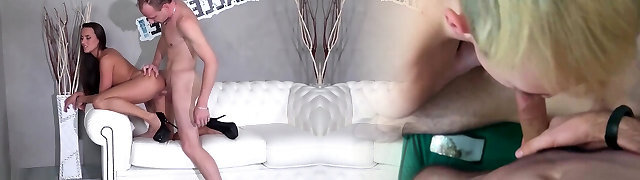 角质继母显示她的大规模的家伙,并要求继子吸吮和舔它在酒店房间