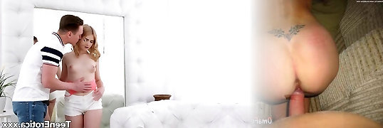 大胸脯的年轻女孩被同父异母的兄弟说服去操她,而他们却深情地玩耍