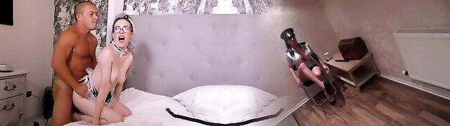 一个巨大的人造公鸡为这个fuckfest饿死蜂蜜,因为她高兴地尖叫