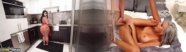 放荡的女仆抓住了服务步骤的儿子迪克在床上后,她清理楼梯