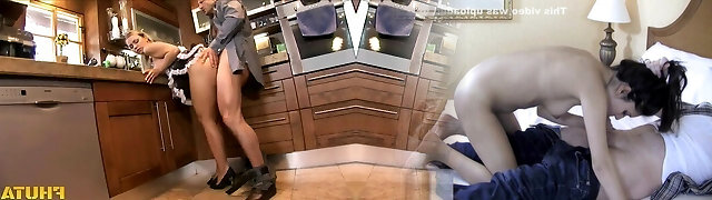 热丰满的女仆与大胸部被搞砸在厨房里通过她的客户