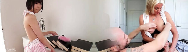 继父有三人与线控制动红发女佣和他的继子的性爱娃娃