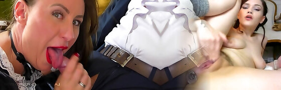 伙计与一个好大小的裤子蛇螺丝豪华女仆萨沙玫瑰在公鸡挤压caboose