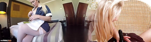 奇妙的金发女佣采取一个巨大的Fuckpole了她的屁股