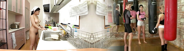 女仆Reyna Belle展示了她的屁股,并从后面被搞砸了。 房屋署