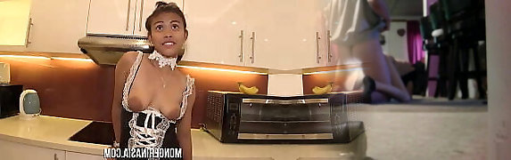 热亚洲女仆引诱她的主人与她的大奶和被撞