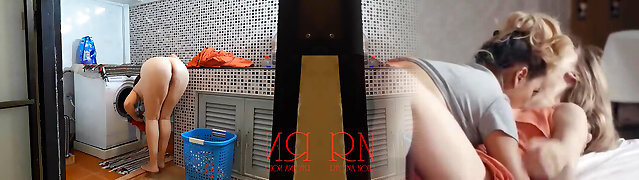 裸体主义者管家Regina Noir在洗衣房客房手淫。 1