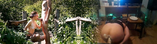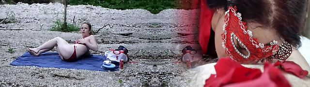 POV-猩红色追逐吮吸你的硬公鸡户外活动