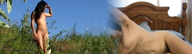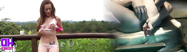 淘气的凯尔表示完美的奶子手淫户外