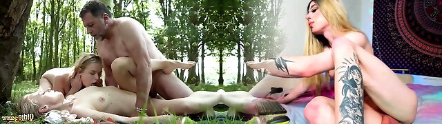 挪威hotty抓住了一个老伙计在森林里