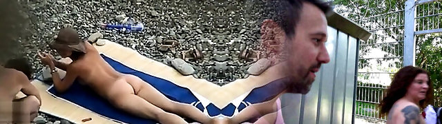 美丽的俄罗斯gal赤裸裸的在公共海滩上