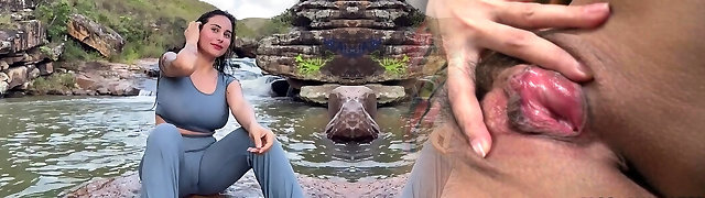 短头发的适婚黑发Nicoletta H犁奇闻趣事在湖边