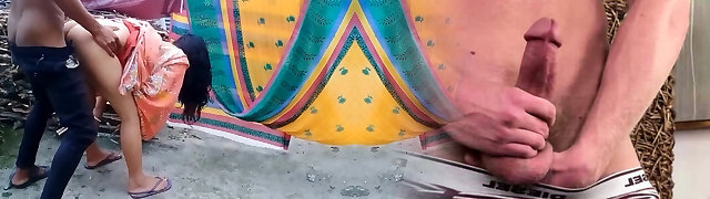印度村Chachi他妈的与Dever Ji户外站着狗爬式的位置
