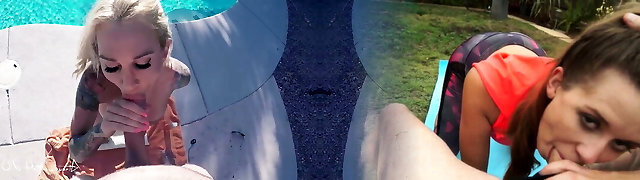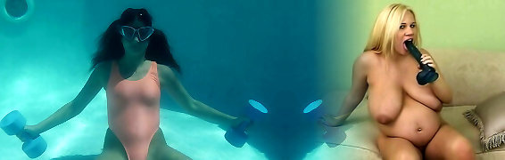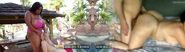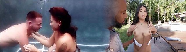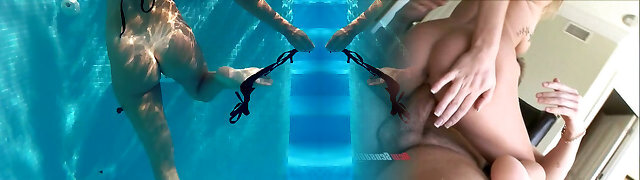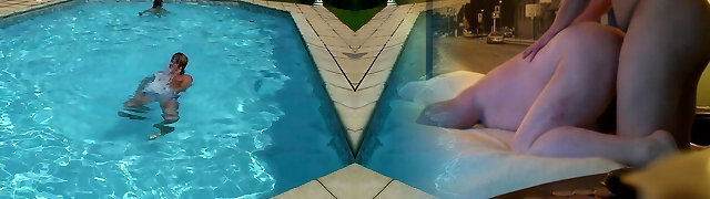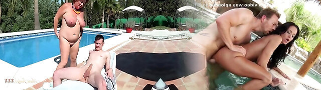圆形和buxom成熟的biotch在游泳池的两个沉重的schlongs上工作