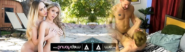 嘶嘶声Ludmila Jay和一个更多的光头发少女分享陌生人的岩石硬香肠
