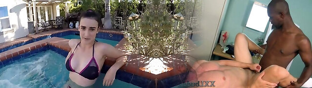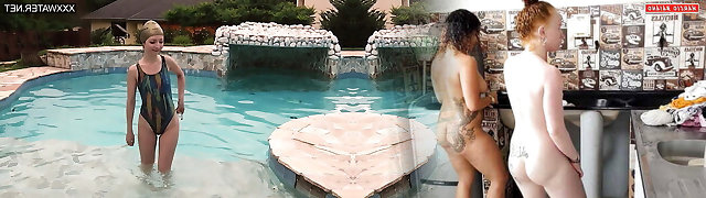 卡特克鲁斯抓住她的神话般的破烂邻居卡利玫瑰裸体在她的游泳池