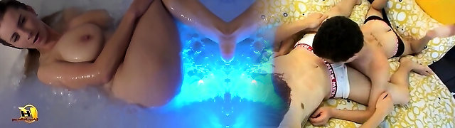巨大的波连可爱的海蒂汽车疯狂的冲击与她的Bf在游泳池