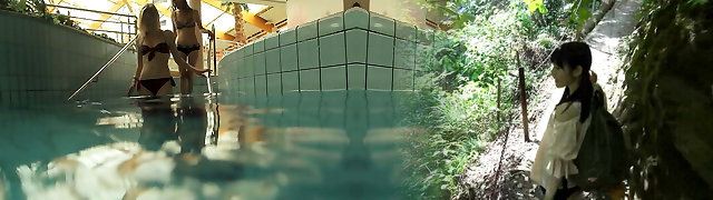 郁郁葱葱的植物学家在间谍我公共游泳池淋浴