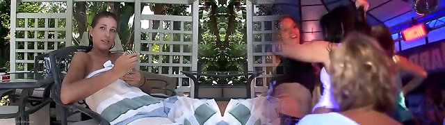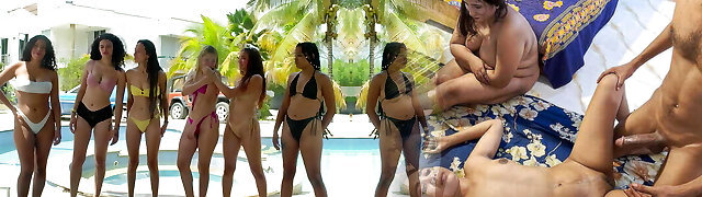 成功的螺柱抓住了四个脂肪bungholes在游泳池
