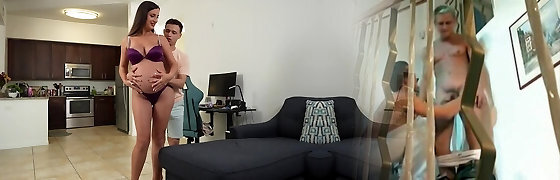 Preggie美洲狮砸toyboy在她的丈夫面前