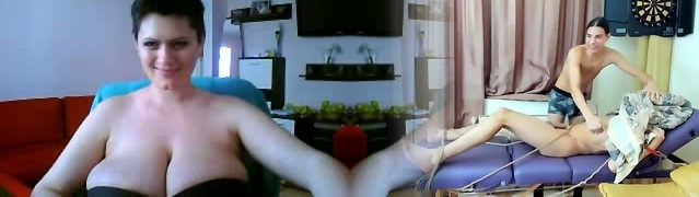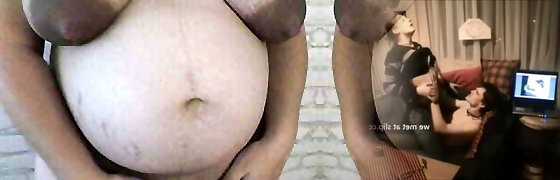 怀孕线控制动摇她的巨大的自然奶上的摄像头