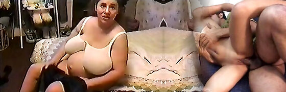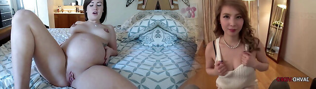 preggo女人与xxl鲣鸟拇指她的蜜罐和溅牛奶从她的胸罩-stuffers