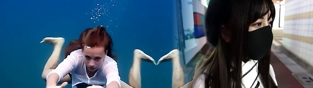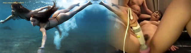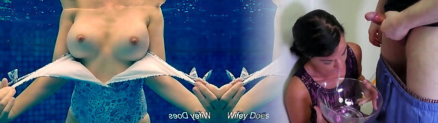 Cumwalk在公共和一个不错的水下他妈的在游泳池
