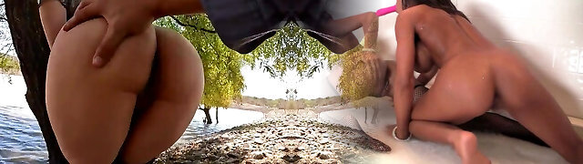 他妈的我的继妹's大屁股在一个公共公园和卡明在她的巨大的奶子