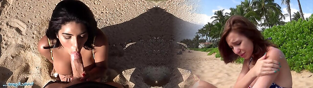 我在海滩上拔出我的公鸡。 这个从这个海滩开车的年轻女子看起来很震惊!!!