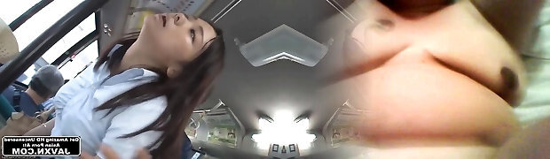 在拥挤的公共汽车上,一个已婚妇女的乳房粘在一个学生的身体上! 妻子的性欲被点燃的公鸡2