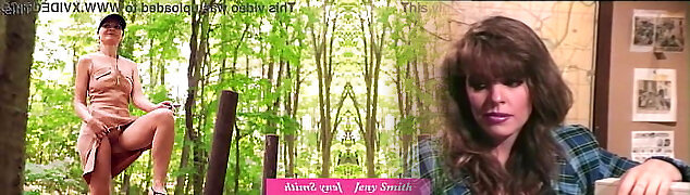 插上电源。 Jeny史密斯twerking赤裸裸的户外与一个玩具