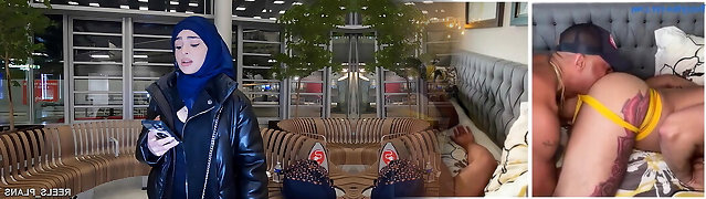 蒙着面纱的伊朗NADJA LAPIEDRA在厕所和走廊里被性交肛门以支付飞机费用!!!