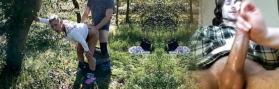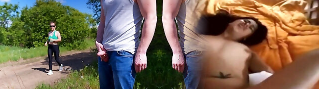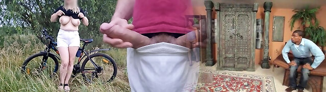 我让骑自行车的女孩看着我从我的老二上打飞机,她同意了,甚至给我看了她的乳头,摸了摸我的老二