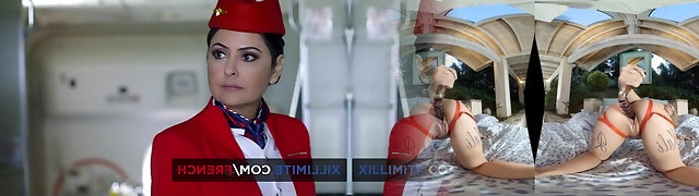 放荡的法国空姐需要得到性交由一个飞行员