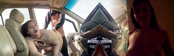 小胸罩填充红发肛门入侵的指甲在车