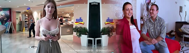 一个女孩在广场上走来走去时露出她的乳房。 公众人士