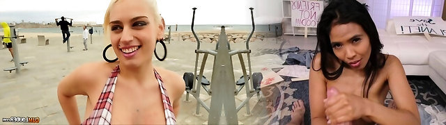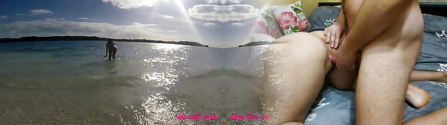 苗条的裸体主义青少年引诱到海滩背面性交由陌生人隐藏凸轮