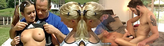 意想不到的三人行与两个美丽的青少年nextdoor女孩在公共
