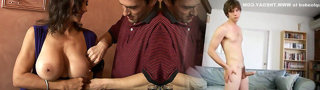 成熟的gal Ania Kinski与沉重的人造球体boinked通过一个年轻的家伙