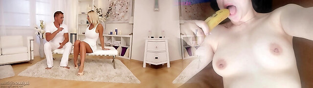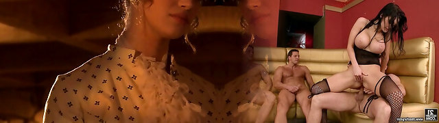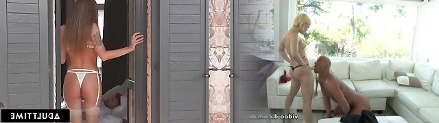 Chesty金发碧眼的Nicolette Shea rails一个dudr,而他的妻子手表