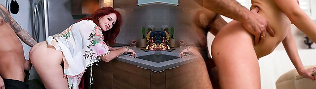 所有先天性的大型地球仪Ginormous屁股热淘气的红发骑着一个确实很大的轴,让她的紧poon creampied与超级他妈的热jizm