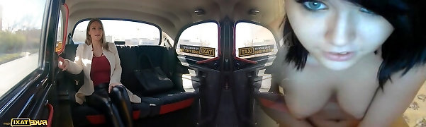 幸运的出租车司机在潮湿的猫nathaly Cherie滑动他的巨型男人香肠